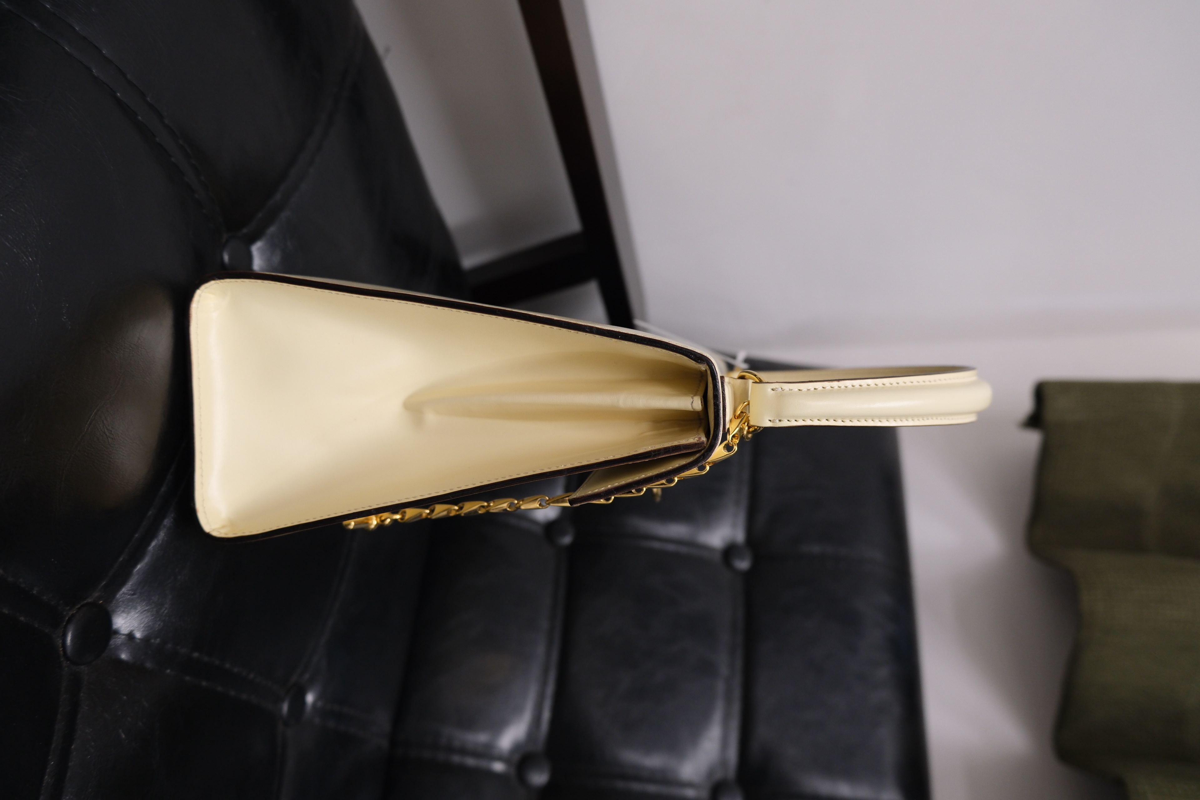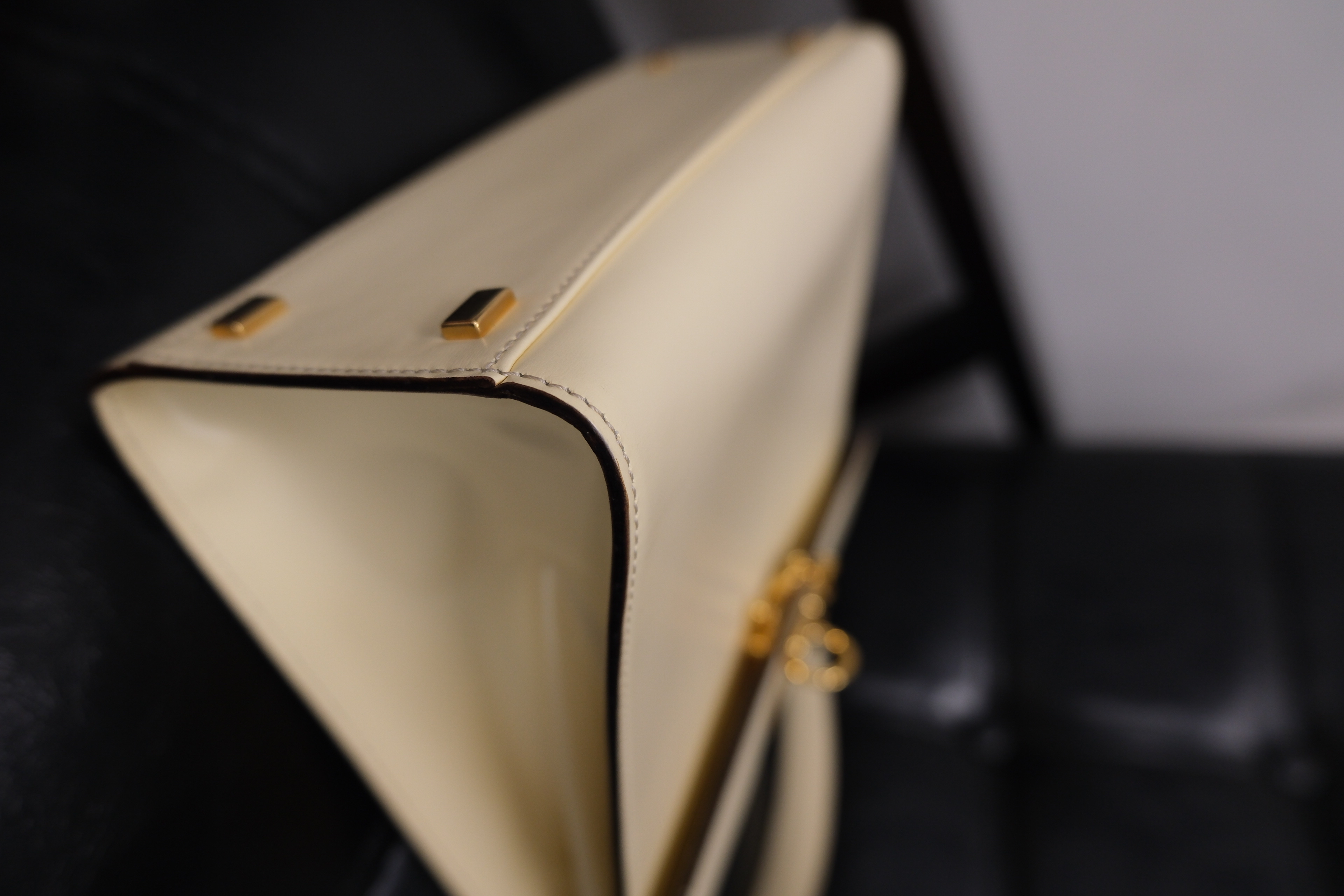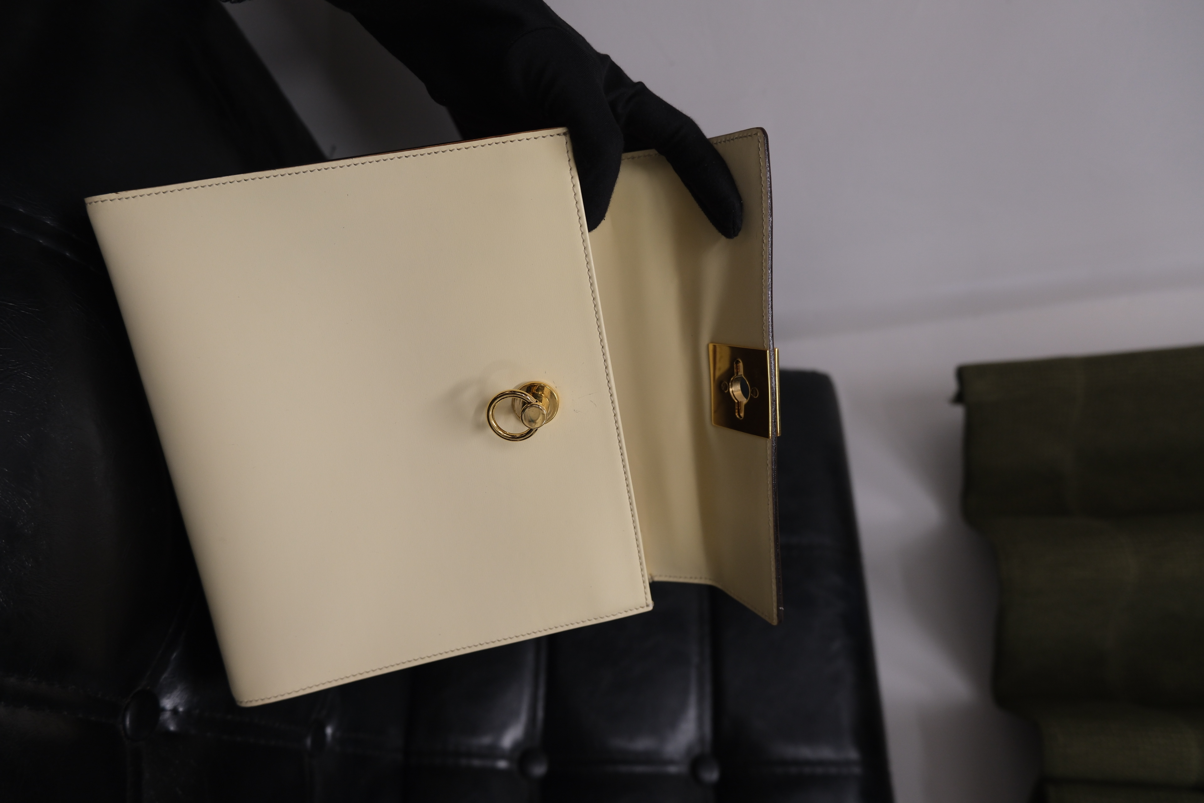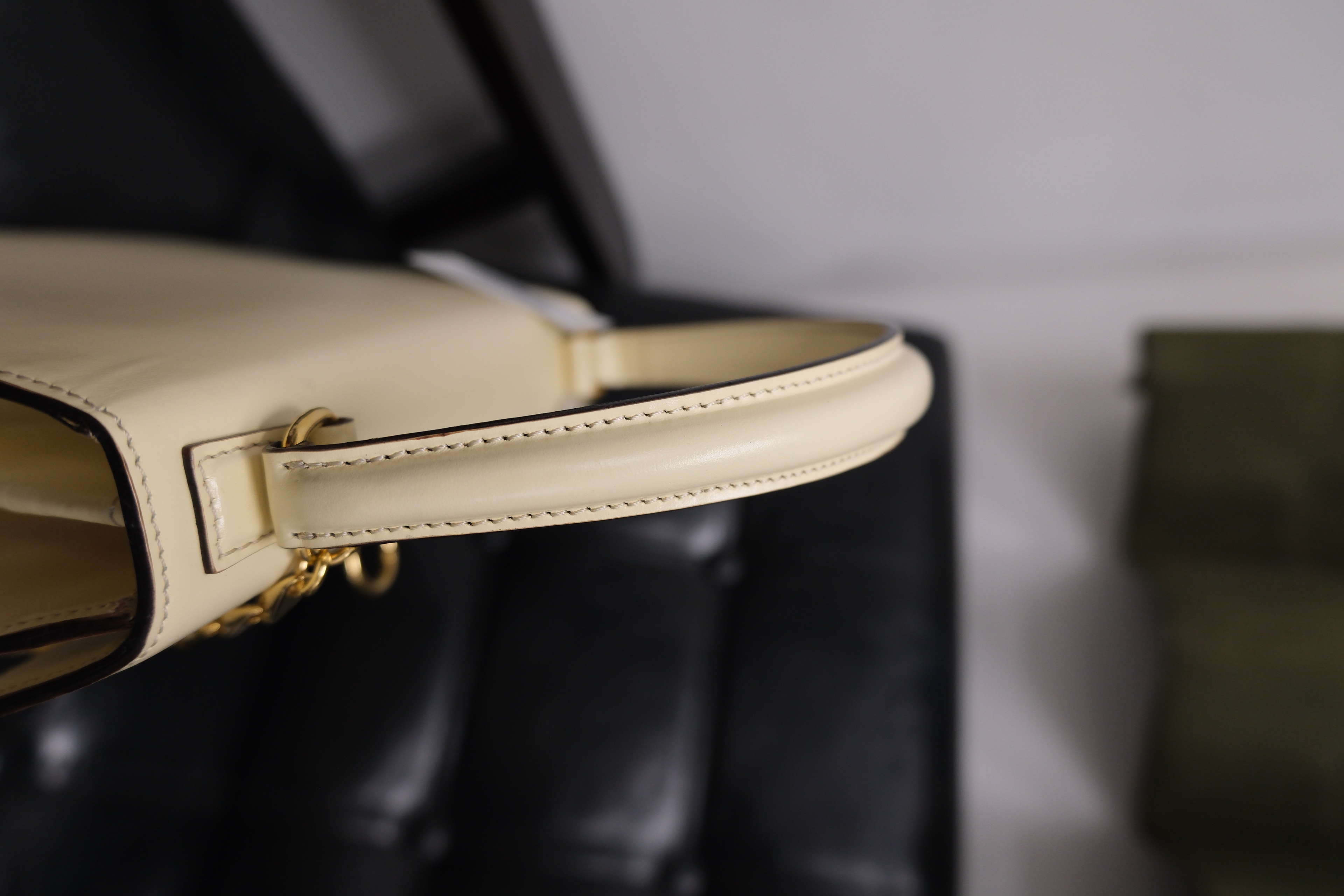 Celine中古Kelly包~ 奶油白Box皮+金色魚骨鏈,優雅復古氛圍感拉滿 手提or肩背都🈴通勤日常都能輕鬆駕奴 稀有中古款,收藏價值高,實用又經典,氣質女孩必入 搭配簡約穿搭,輕鬆get高級感 送金屬鏈條,可單肩/斜背 配件:卡仔 Rank A 整體不錯 有正常使用保存痕跡‼️ 整包內外五金已清潔🧹 Size:W23.5 x H20 x D10 cm 中古品均有歲月痕跡,完美主義者請慎重考慮‼️ Photo by @k.mail_vintage2 All Brand designs,logo & copyright belong to Celine