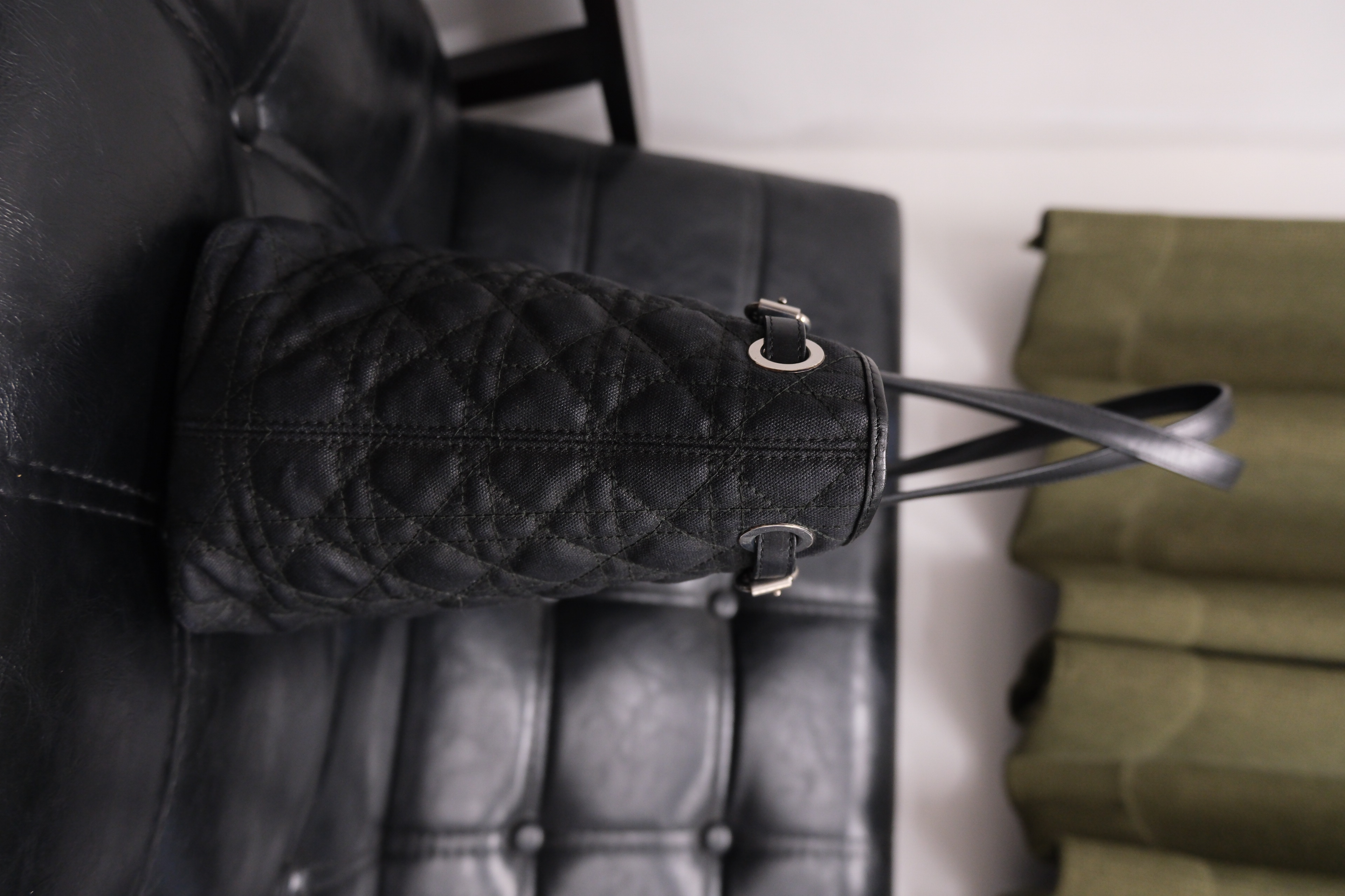 Dior Cannage Panarea Coating Canvas Tote Bag Black