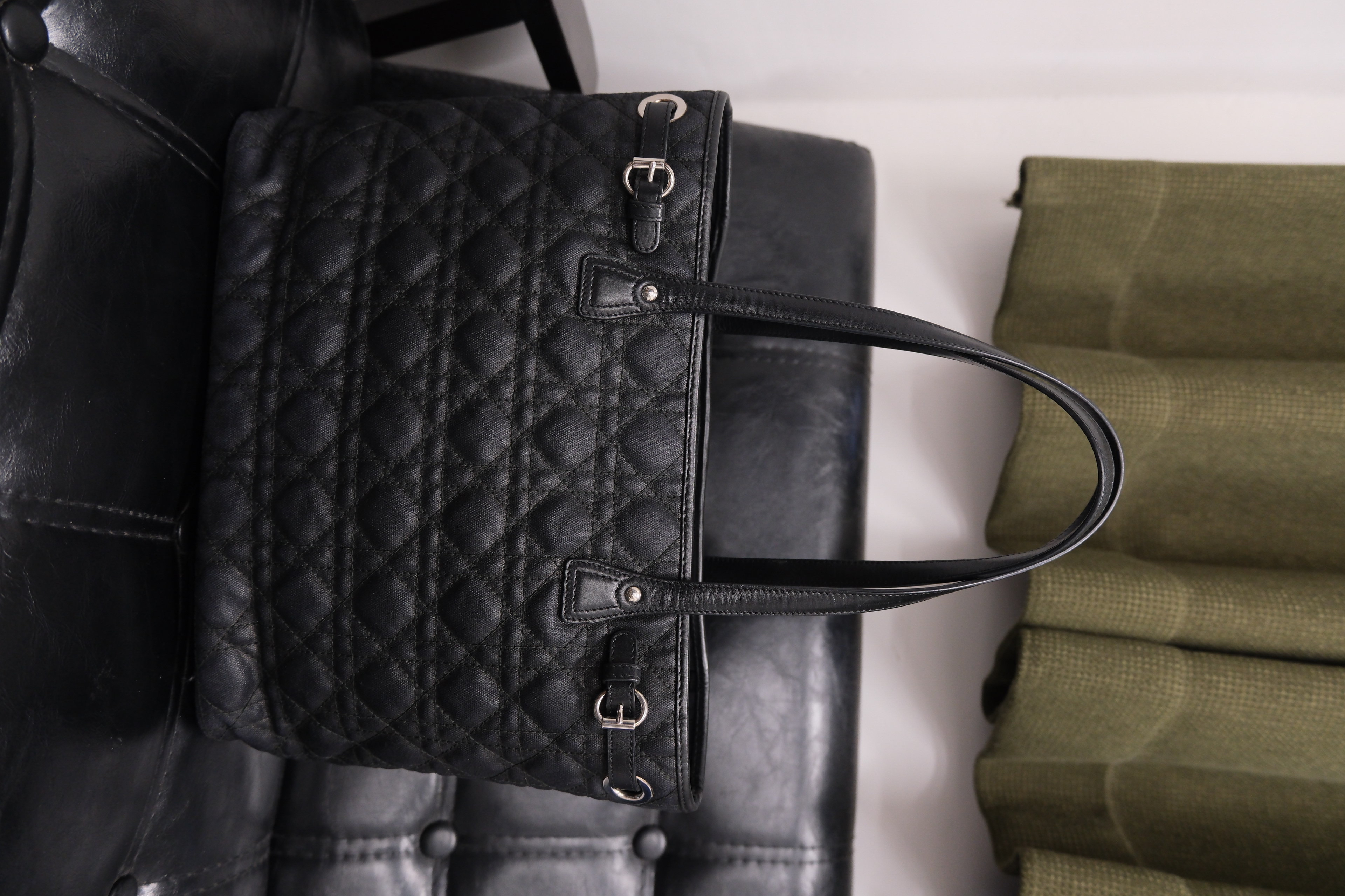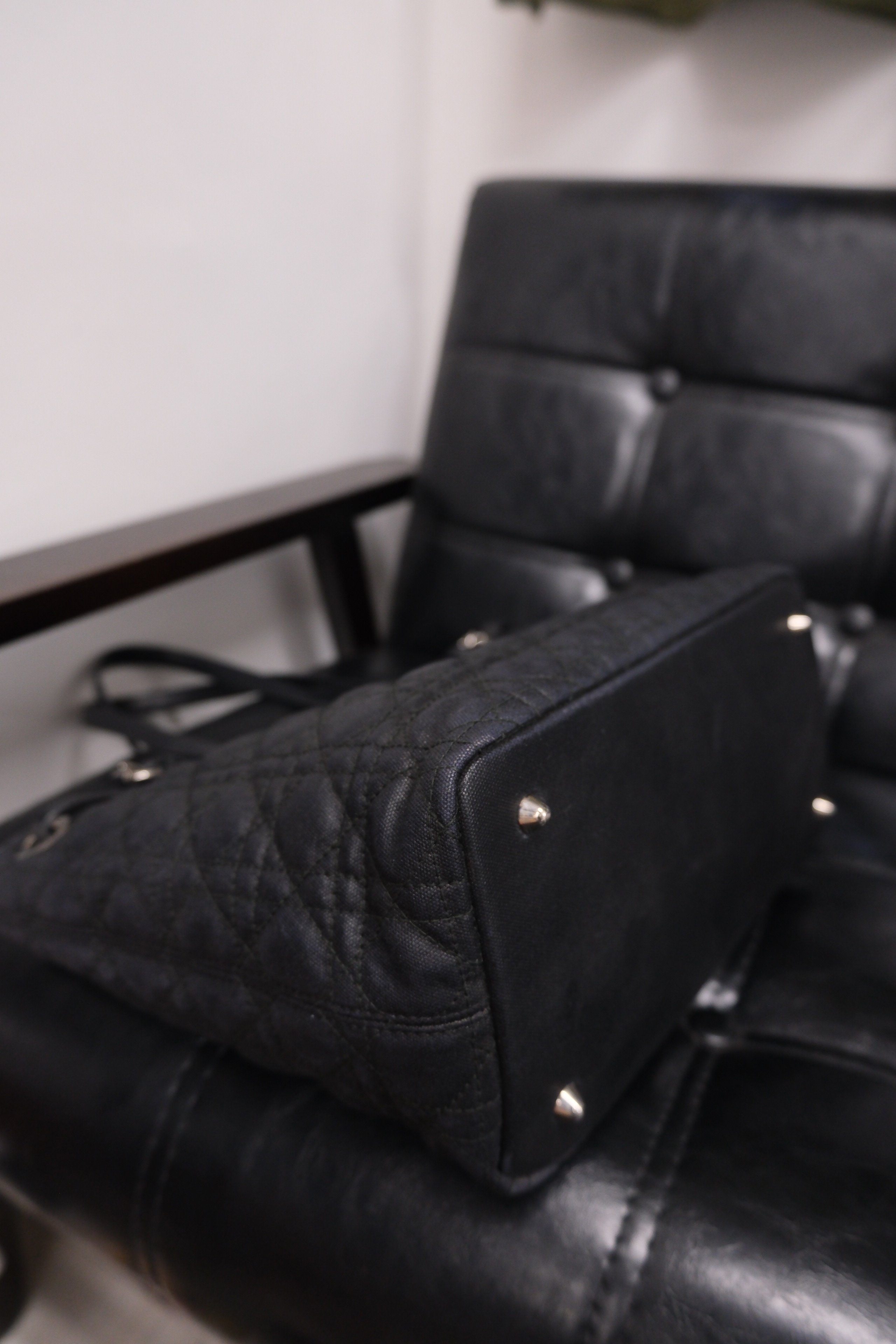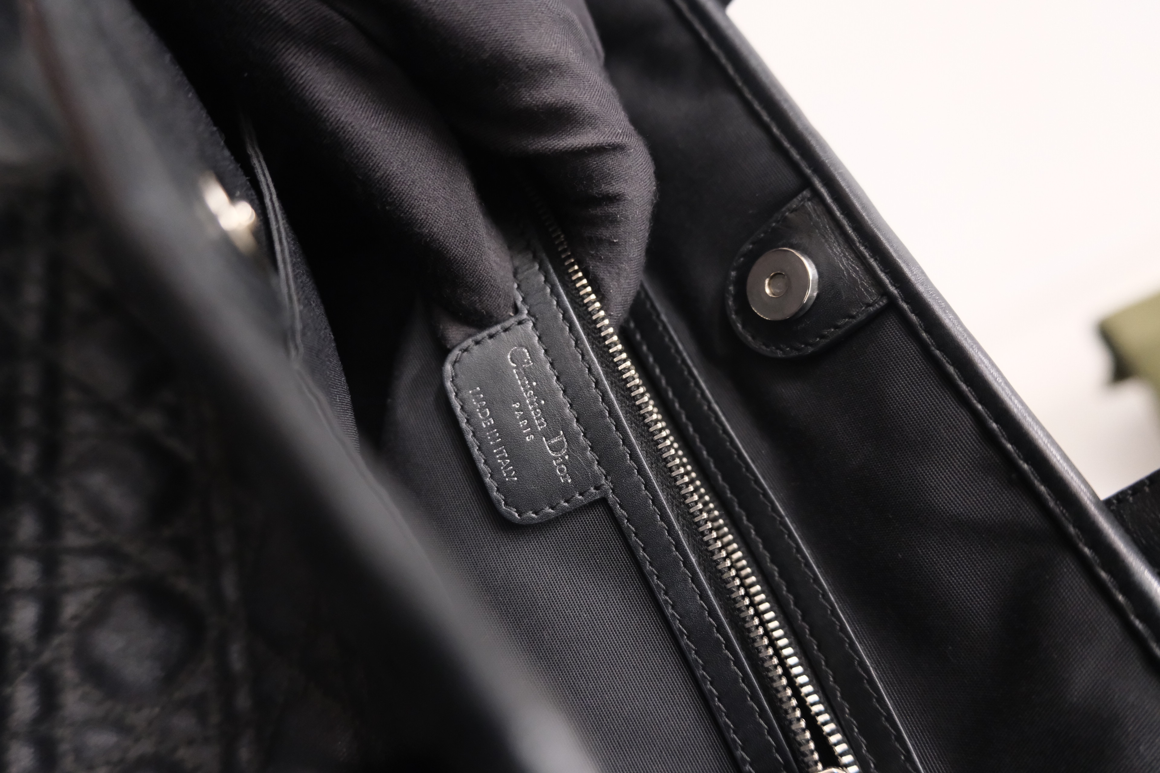Dior 中古黑銀 Lady Tote Bag 可上膊~ Rank A 整體不錯,有正常使用保存痕跡‼️ 整包內外五金已清潔🧹 Size:W32 x H25 x D16 cm 中古品均有歲月痕跡,完美主義者請慎重考慮‼️ Photo by @k.mail_vintage2 All Brand designs,logo & copyright belong to Dior