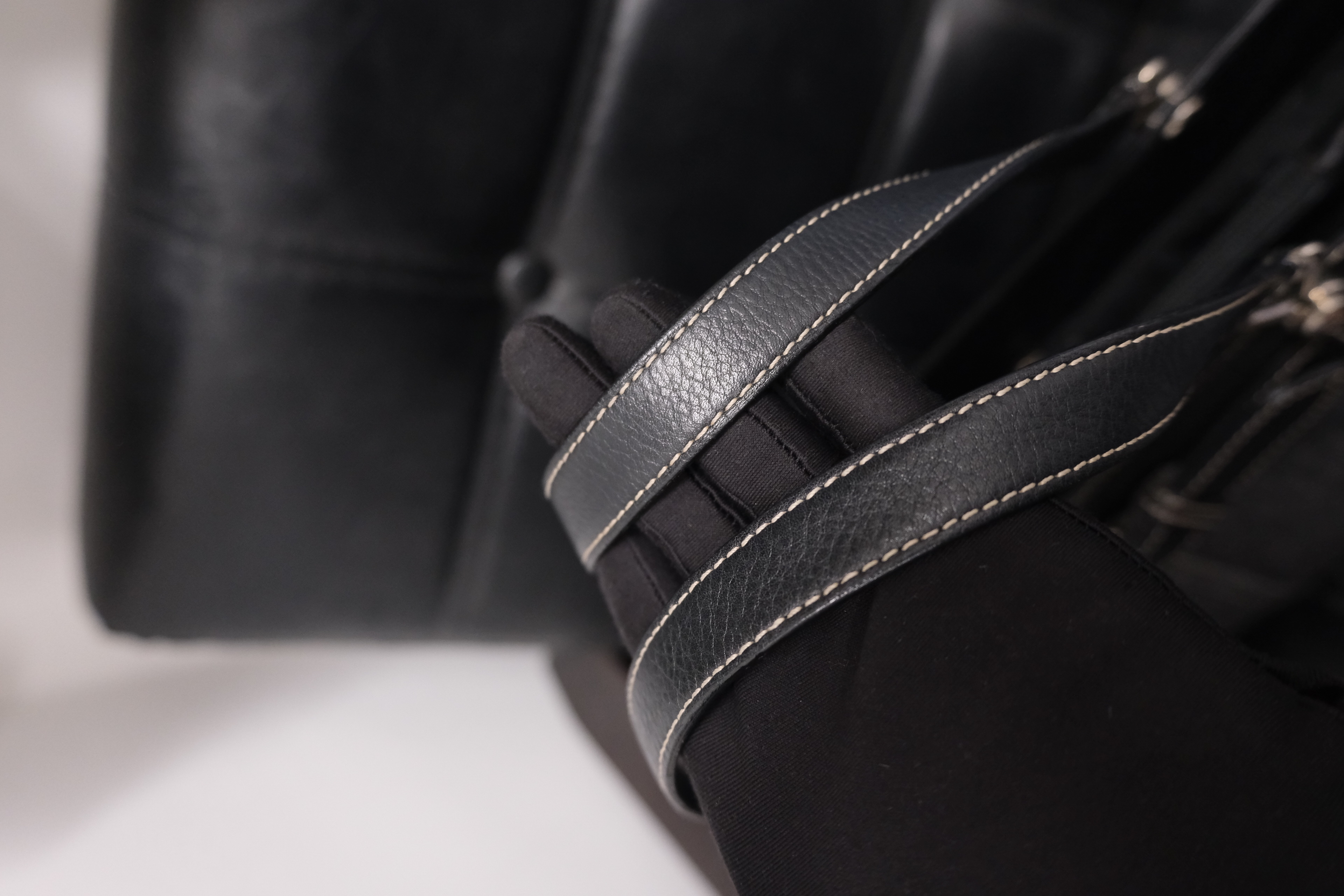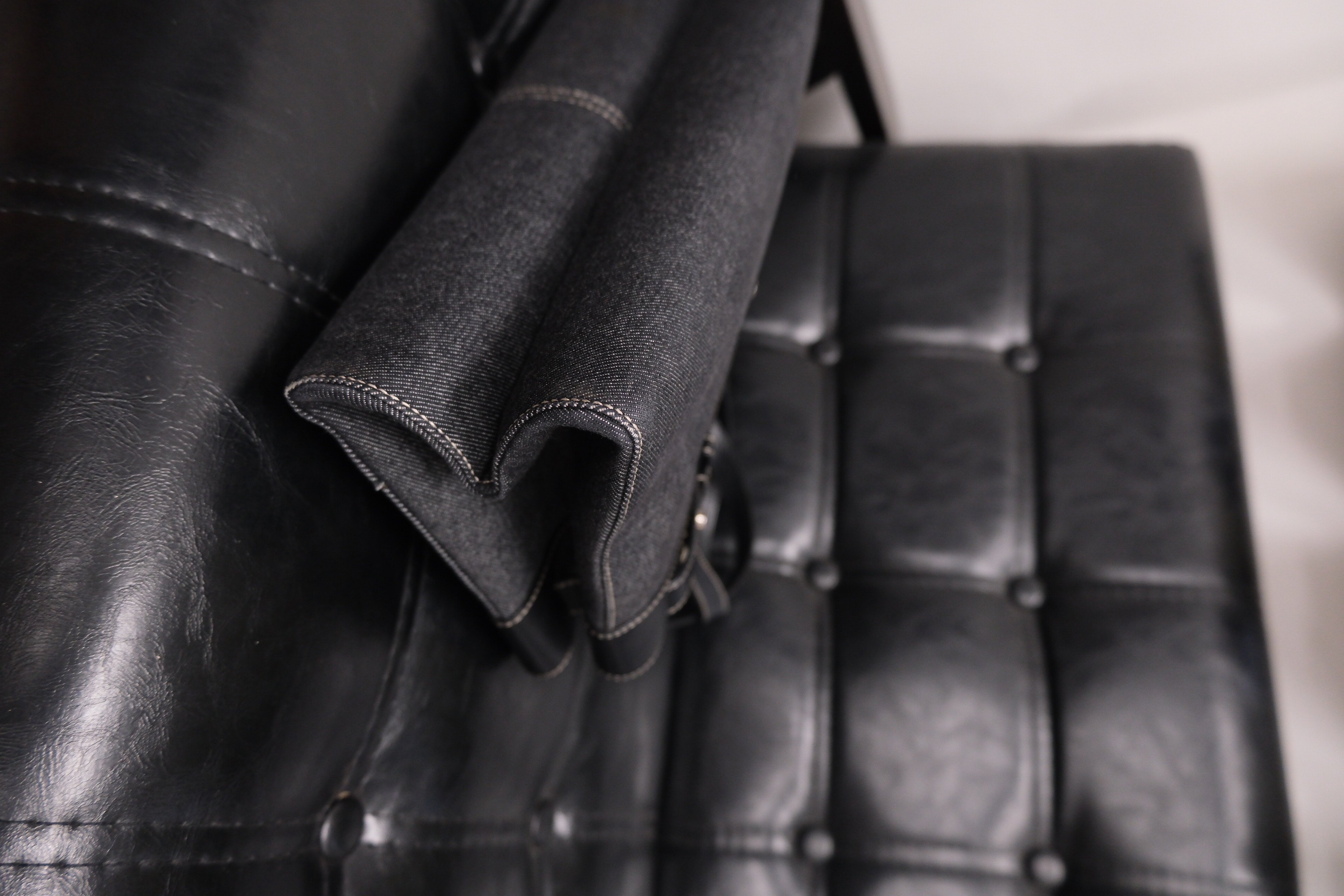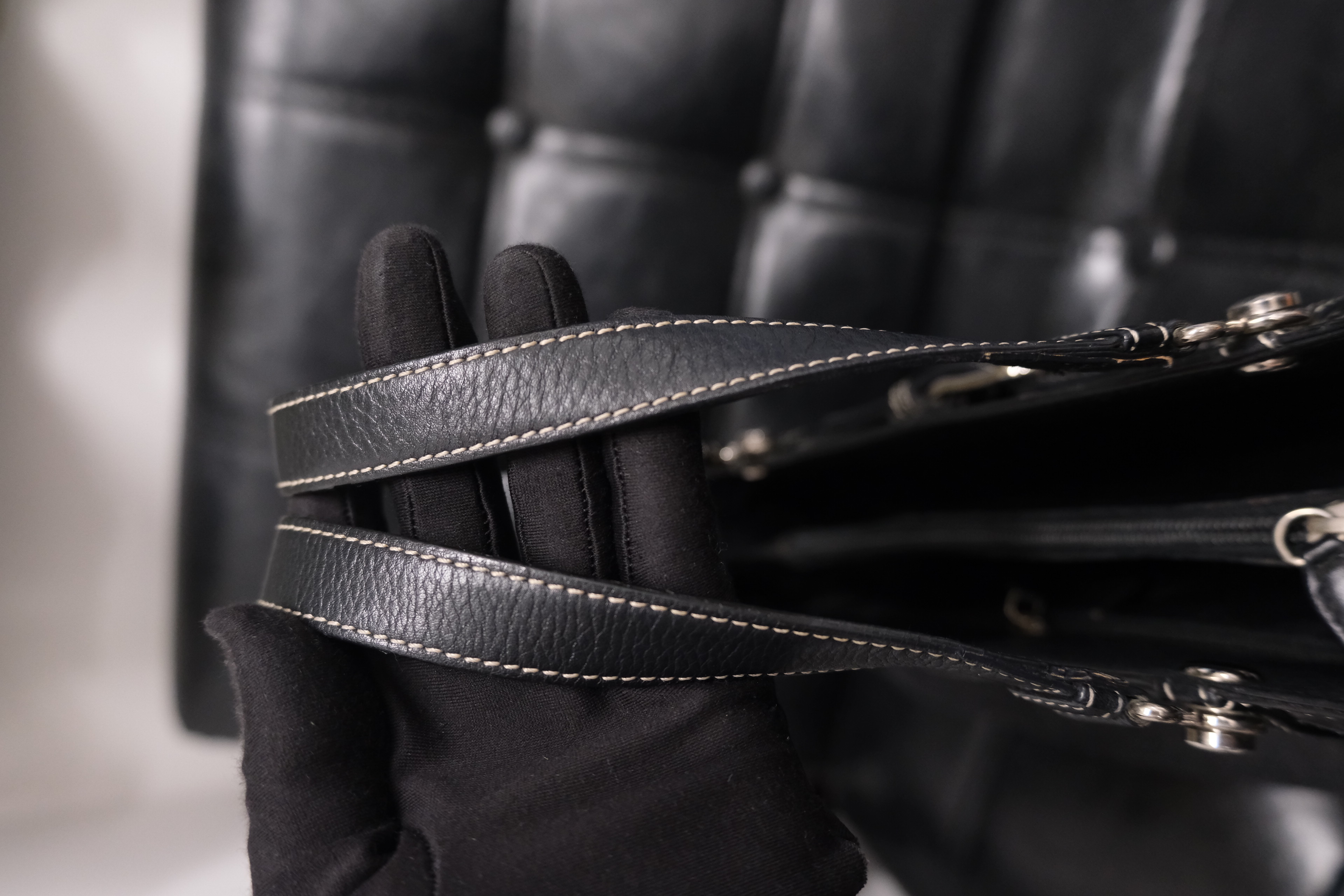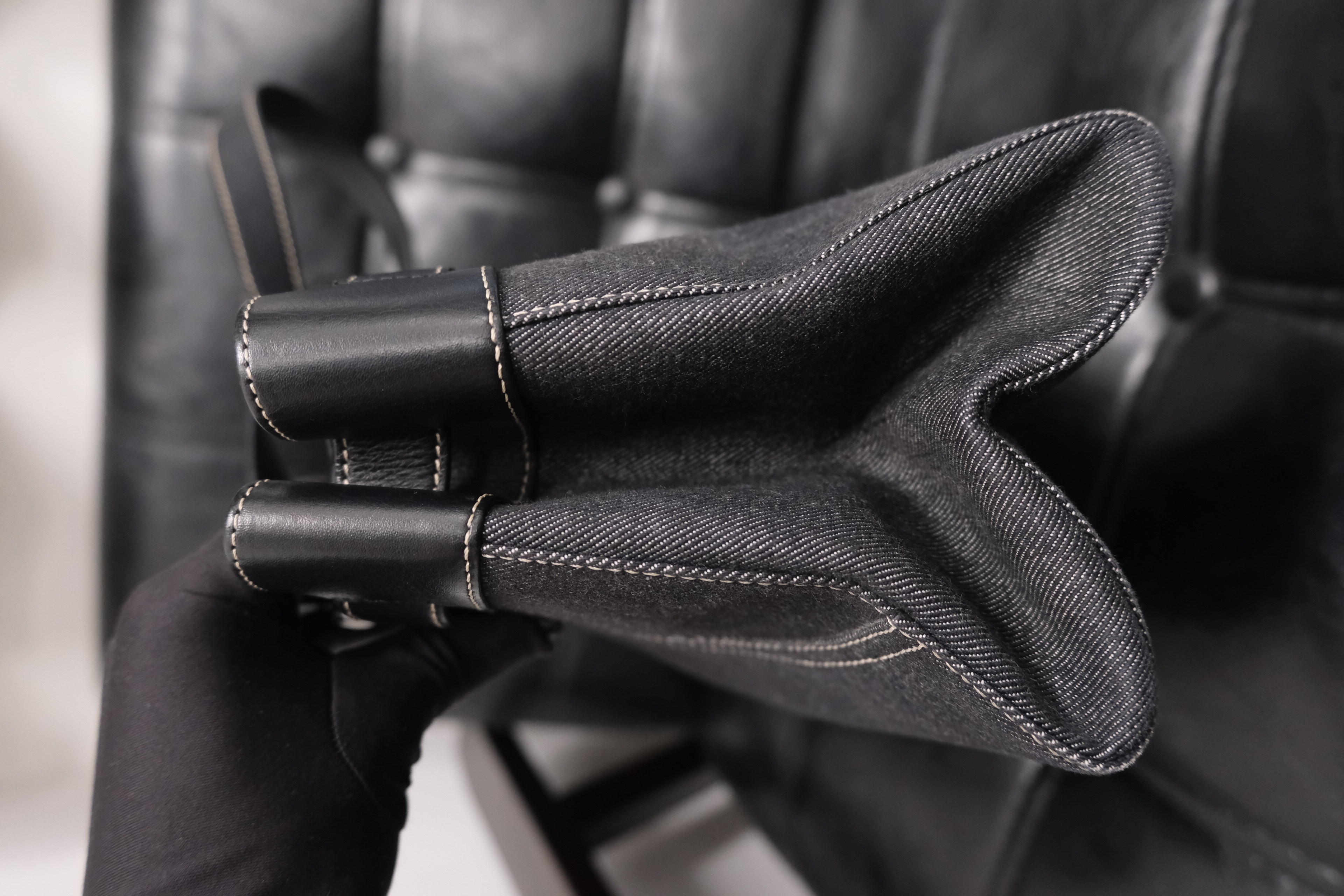 Dior牛仔拼皮手提包 黑色丹寧牛仔布+皮革拼接 白色外縫線超有工裝感 包型長方,通勤休閒都能用 五金復古,手柄皮革耐用 內部空間寬敞,日常物品輕鬆裝下 中古市場稀有品,實用又有收藏價值 Rank A 整體不錯,有正常使用保存痕跡‼️ 整包內外五金已清潔🧹 Size:W38 x H18x D11 cm 中古品均有歲月痕跡,完美主義者請慎重考慮‼️ Photo by @k.mail_vintage2 All Brand designs,logo & copyright belong to Dior