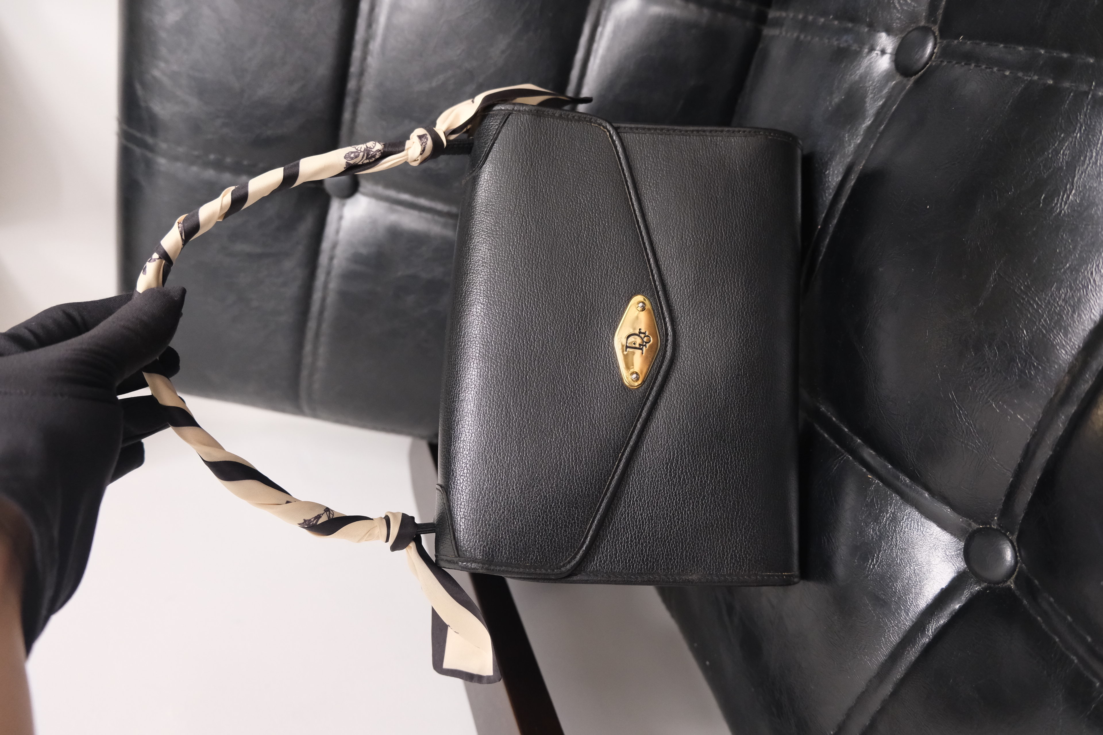 Dior 黑金皮款Kelly Bag🖤 男女可用的款式~ 送圖中非原裝肩帶及Twilly,可手提/單肩/斜孭🉐 Rank A 整體新淨,有正常使用保存痕跡‼️ 整包內外五金已清潔🧹 Size:W22 x H17 x D5 cm 中古品均有歲月痕跡,完美主義者請慎重考慮‼️ Photo by @k.mail_vintage2 All Brand designs,logo & copyright belong to Dior