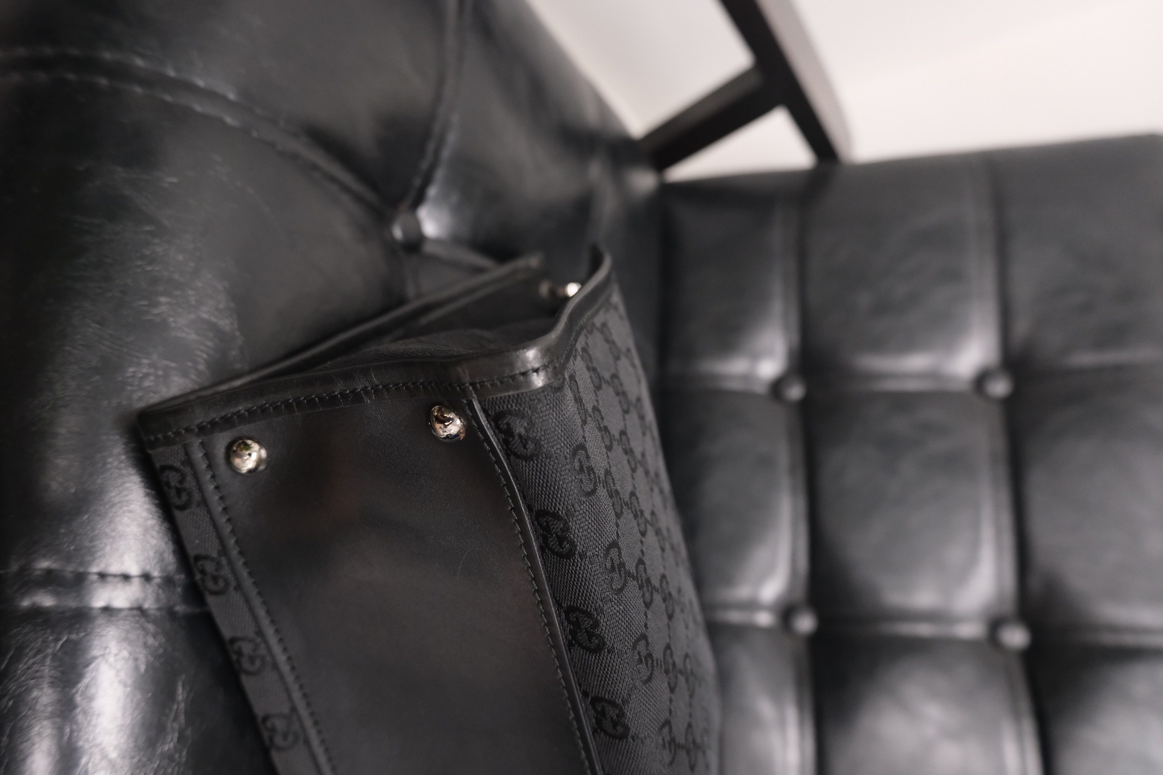 黑色老花Tote Bag🖤 好裝且實用,價廉物美的一款~ 容量很足,能放下IPad 📱 開合簡單,適合上班上學的一群📚 配件:防塵袋 Rank A 有正常使用痕跡‼️ 整包內外已清潔🧹 Size:W23 x H25 x D14 cm 中古品均有歲月痕跡,完美主義者請慎重考慮‼️ Photo by @k.mail_vintage2 All Brand designs,logo & copyright belong to Gucci